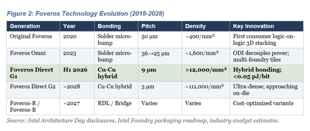 两种成本优化变体完善了产品组合:Foveros-R (更便宜的 RDL 中介层)和Foveros-B (RDL 加上局部硅桥),两者的目标都是在 2027 年左右投产。