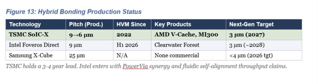 台积电的产能领先优势是实实在在的。三到四年的混合键合产品出货经验意味着其良率学习能力、客户信任度和供应链成熟度,而这些都是英特尔尚未获得的。等到英特尔实现量产时,台积电可能已经领先两代产品了。