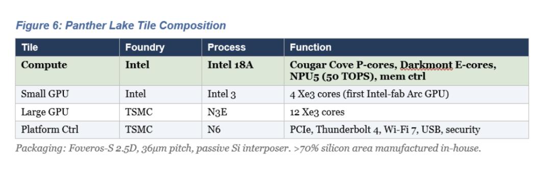为什么要将GPU的生产分散到两家代工厂?因为经济因素迫使我们这样做。台积电的N3E芯片在处理更大规模的并行工作负载时,能够提供更高的密度和效率。据报道,Intel在大尺寸芯片的成本上不具备竞争力,但这种小型GPU芯片可以作为英特尔代工厂GPU制造经验的学习平台。最终结果是:Panther Lake超过70%的芯片面积由英特尔自主研发,这与Lunar Lake和Arrow Lake的情况截然不同。