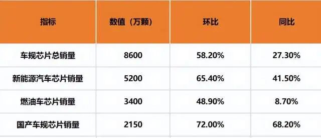 总销量为8600万颗,其中新能源汽车芯片为5200万颗,占比高达60%。而这8600万颗芯片中,国产为2150万颗,占比大约为25%。