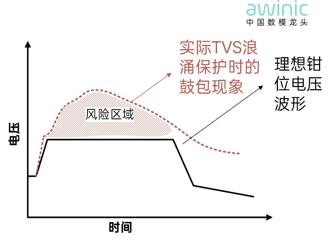 图1 传统TVS触发浪涌保护时的电压鼓包现象