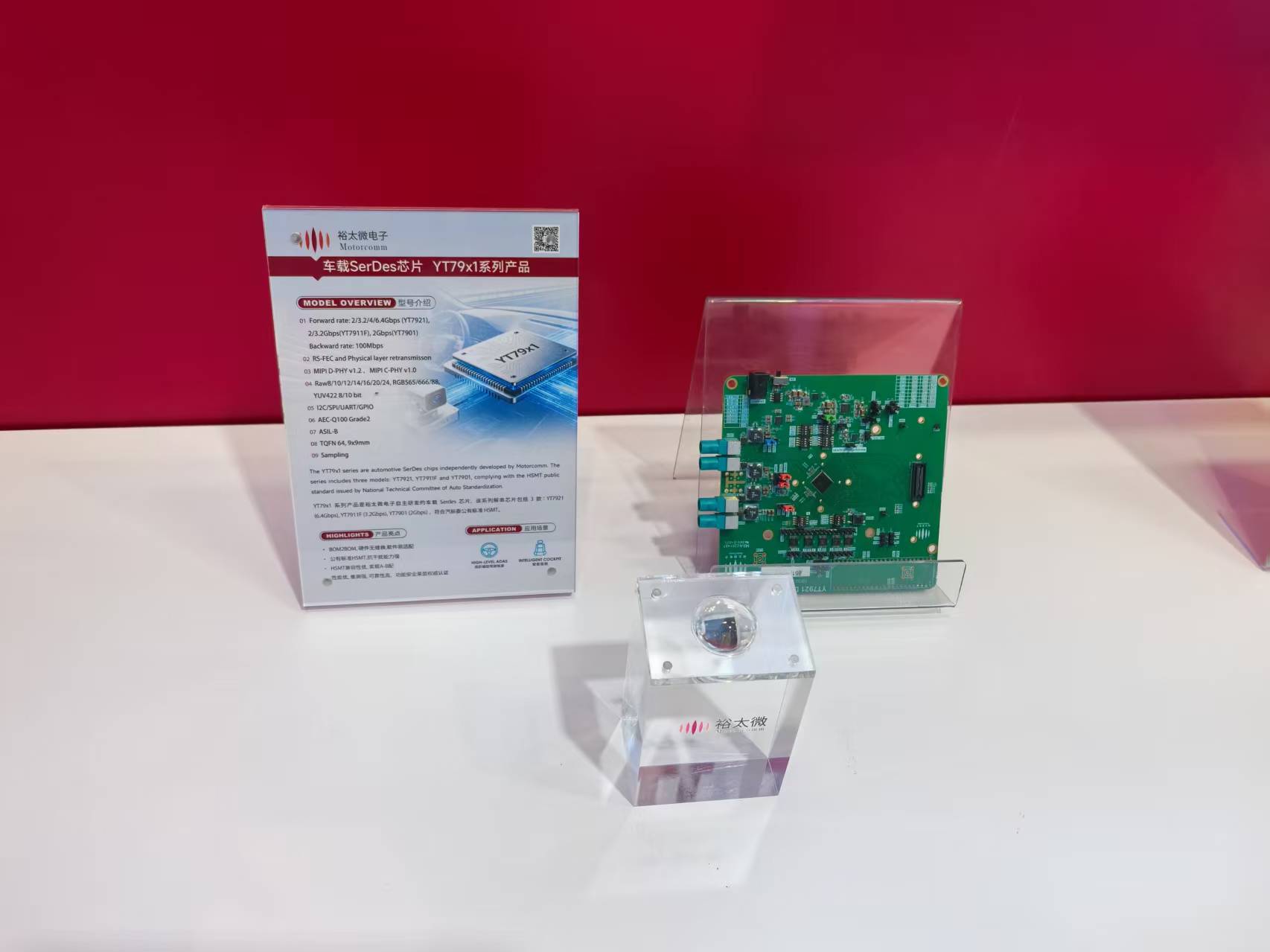 智能驾驶越来越依赖摄像头、雷达等传感系统,也越来越依赖高速接口SerDes芯片将捕捉的海量原始数据,高速低延迟地传至计算单元。根据相关人员介绍,目前一辆L2+级别的智能汽车可能搭载8-12个摄像头,每秒钟产生的视频数据量可达GB级别。没有SerDes支持的高效数据链路,庞大的数据量将难以被及时处理和响应。车展上,裕太微重点展示了旗下车载 SerDes芯片 YT78/79 系列。裕太微是国内少数实现“PHY+Switch+SerDes”全栈布局的企业,SerDes 芯片可高效传输多传感器融合数据,保障激光雷达、高清摄像头与域控制器间的实时交互。