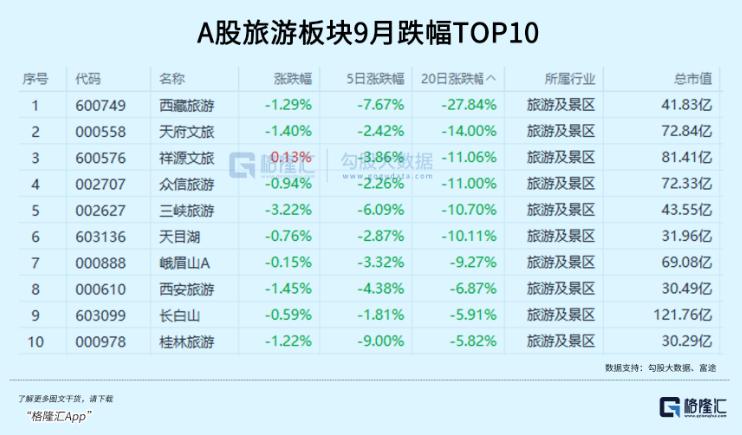 除了食品饮料外,旅游、休闲食品、家电等传统消费板块9月的行情中同样相对较为惨淡,成为跌幅榜中最缺乏关注度的存在,多数板块月内的整体跌幅均接近或超过10%。不过在此前,这些板块也在上半年也一度被资金抱团疯狂热炒,如一度十日翻倍的西藏旅游、二季度翻倍股天府文旅等,反而成为了9月份回调最多的标的。