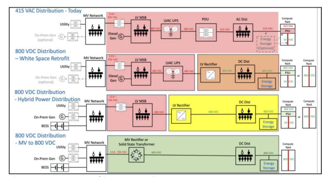最终阶段则是全直流化,从中压(10kV)直接降到800VDC,实现完整的直流供电链路。