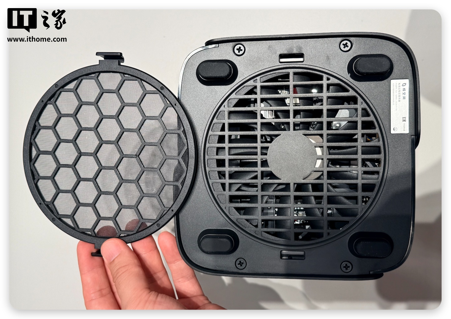机身底部自带了一块卡扣式固定的防尘网。