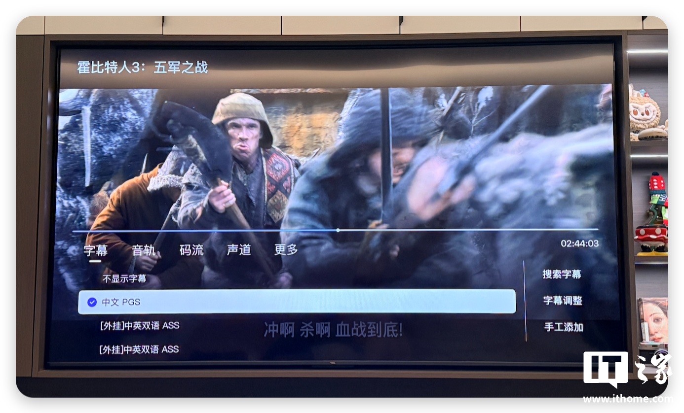 解码能力方面,也能够点亮 P5、P8 格式的杜比视界,其余个性化设置,如调节字幕大小、选择音轨等,也都具备。