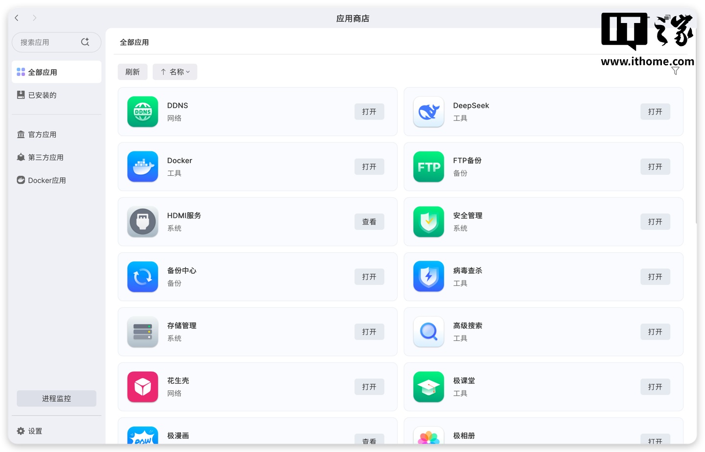 值得一提的是,应用商店中还有 Docker 应用专区,可以将有一定门槛的 Docker 应用程序部署图形化、简单化,这对许多接触 NAS 的新手来说,非常友好。