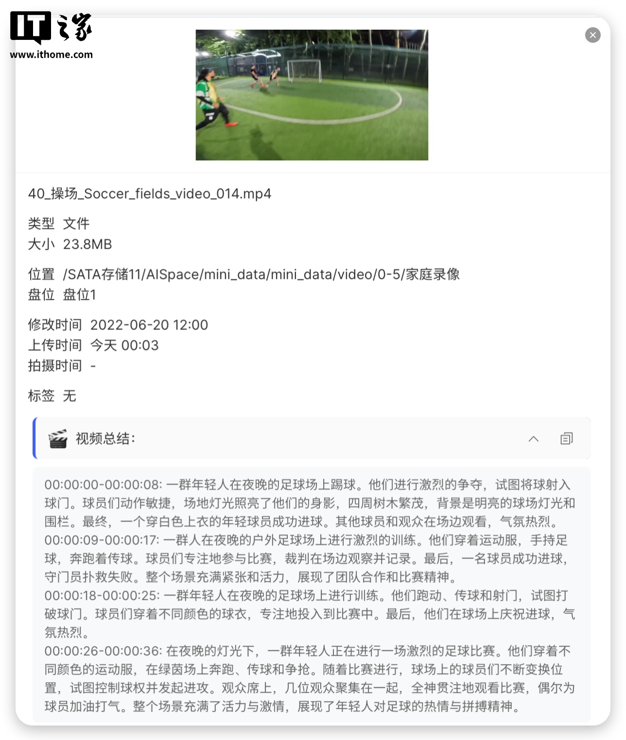 不仅是图片,对视频的识别也是非常详细,除了对画面的识别,甚至还识别到了章节,根据视频的不同时间段,进行了详细地描述,难怪搜索的时候这么迅速。