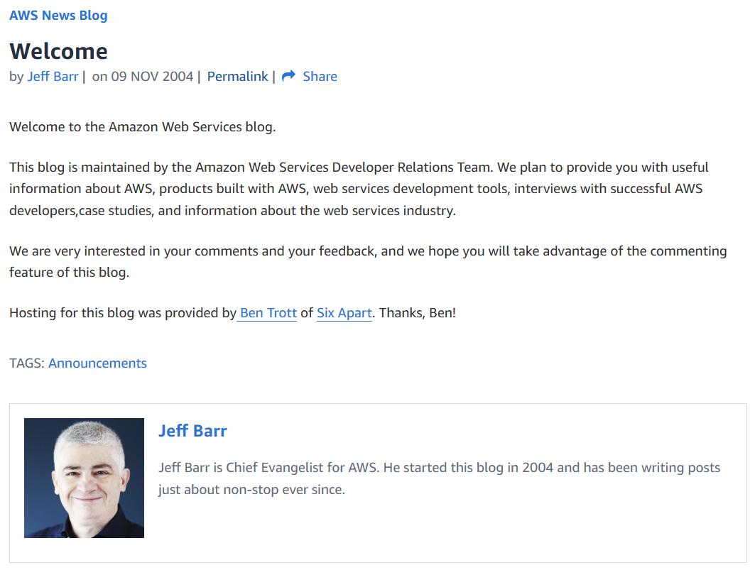 AWS News Blog 的第一篇博客