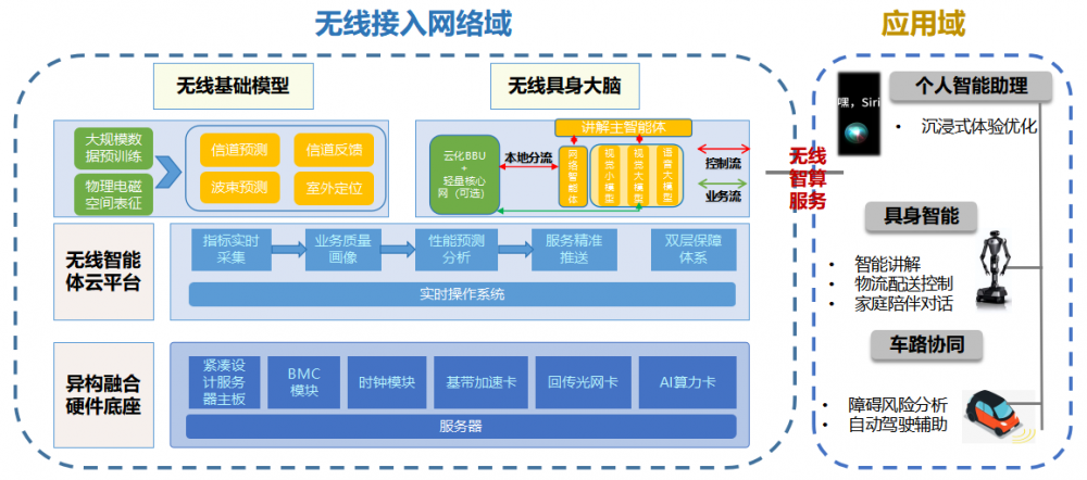 一是无线通算智硬件平台:突破ICT系统分立瓶颈,构建自主可控数字底座。针对传统通信设备与计算系统长期分立、难以高效协同的产业痛点,中国移动自研的无线通算智硬件平台创新实现了ICT融合设计。该平台在确保全国产自主可控的基础上,成功实现了通信、计算与智能的异构融合,既兼顾了IT领域的开放生态理念,又满足了CT领域的实时可靠性要求。这一平台将成为6G时代构建通算智深度融合核心基础设施的关键“数字底座”,为下一代信息服务的全面升级提供坚实基础。