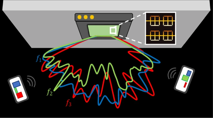 以往方法通常只能在时间或频率维度上改变信号,而无法同时控制两者。莱斯团队则利用超表面实现了在时间与频率双维度的可控变化。比尔金解释道:“延续灯塔的比喻,我们的系统首次实现了‘多色且随时间变化’的信号发射。由于随机色彩会在不同时间窗口重新洗牌,即使信号环境嘈杂(如‘有雾’),或带宽受限(灯塔无法发出太多颜色),接收方仍可通过累积观察获得更精准定位。”