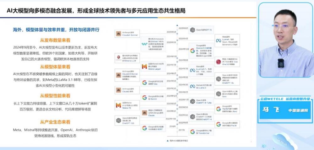 当前,AI大模型向多模态融合发展,形成全球技术领先者与多元应用生态共生格局。AI大模型发展从重训练转为重推理、重应用,AI智能体迎来黄金发展时期。马飞谈到,AI大模型的发展重心向推理与应用的转变,不仅反映了技术进步的内在需求,也契合了实际应用场景对智能化水平的更高期待,为AI智能体的出现奠定了基础。