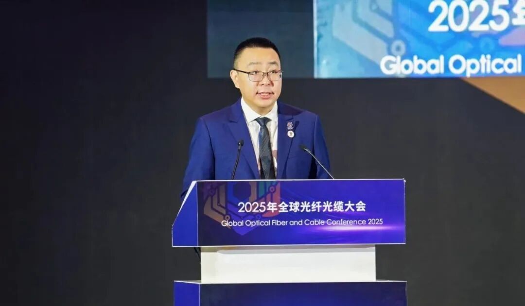 江苏中天科技股份公司董事长薛驰在大会开幕式上发表欢迎致辞,代表主办方对远道而来的各位嘉宾表示诚挚欢迎。他分享三点核心感受:一是乘“数”而上,把握产业新机遇。AI 大模型等新兴场景对通信基础设施需求爆发式增长,光纤光缆产业迎来黄金发展期。二是向“新”而行,强化主体新担当。光通信产业作为战略高技术产业,需坚定自主创新之路,中天科技聚焦空芯光纤等前沿技术的攻关突破。三是聚力同心,谱写共赢新篇章。“携手构建人类命运共同体”,时代命题呼唤同心协力,为实现“光电网联美好生活”贡献力量。