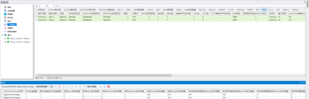 突破传统静态测试局限,支持路由条目批量动态增删、链路状态实时切换、AS 域拓扑灵活调整。可模拟 “单链路突发中断”“多 AS 域路由震荡”“超大路由条目(千万级)收敛” 等复杂场景,精准测试设备在动态变化下的路由学习与选路响应能力,提前暴露路由收敛缓慢、选路错乱等潜在风险。