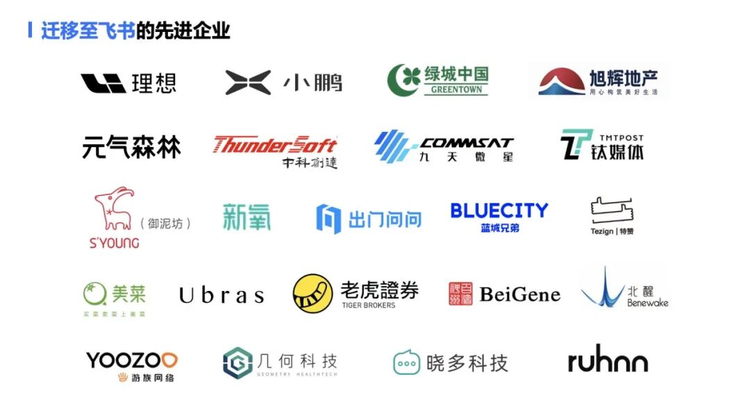 飞书则拉出一长串客户名单:抢走泡泡玛特;国内销量前三十的新能源汽车品牌中六成在用飞书;6家上市茶饮品牌里5家选择飞书;市值前十的上市国货美妆品牌中7家使用飞书。上海游戏圈F4(米哈游、叠纸、莉莉丝、鹰角),有三家都在用飞书。