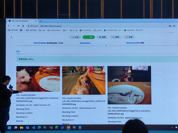有了AI NAS,就可以根据不同的关键字,甚至是自然语言,精准检索需要的照片和视频,甚至是非常复杂的关键字,比如“狗子在桌子左边”、“一朵花和三只瓢虫”、“鲜花正在凋谢”,而结果会以相关度排序呈现。