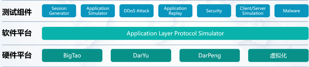 ALPS软件平台可以搭载在不同硬件平台BigTao、DarYu、DarPeng、虚拟化上(硬件平台性能由低到高从左往右排序),所搭载的硬件平台性能越高,回放的性能越高,同时可以支持多台仪表级联,随着级联仪表的增加,回放的性能线性增长,不用再为如何回放大流量发愁。