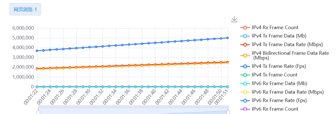 仪表测试结果支持L1到L7层及IPv4/IPv6双栈的精准带宽分析,清晰看到有效数据的传输效率,洞察一切细节测试结果。