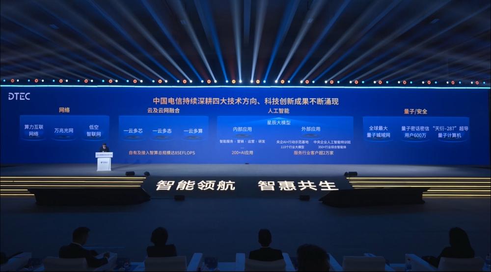 网络方面,中国电信不断夯实网络基础,打造入算、算间、算内协同的算力互联网;在全国重点城市开展了多个应用场景的万兆光网试商用;超前部署低空智联网,推出全球首张天翼低空卡。