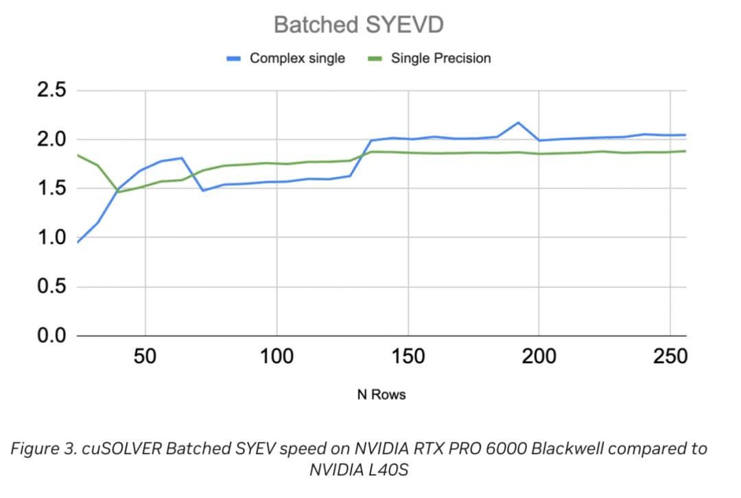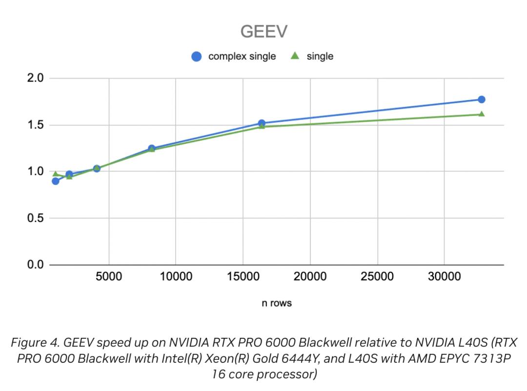 CUDA 13.1 继续优化用于特征分解的批处理 SYEVD 与 GEEV API,并带来了显著的性能增强。