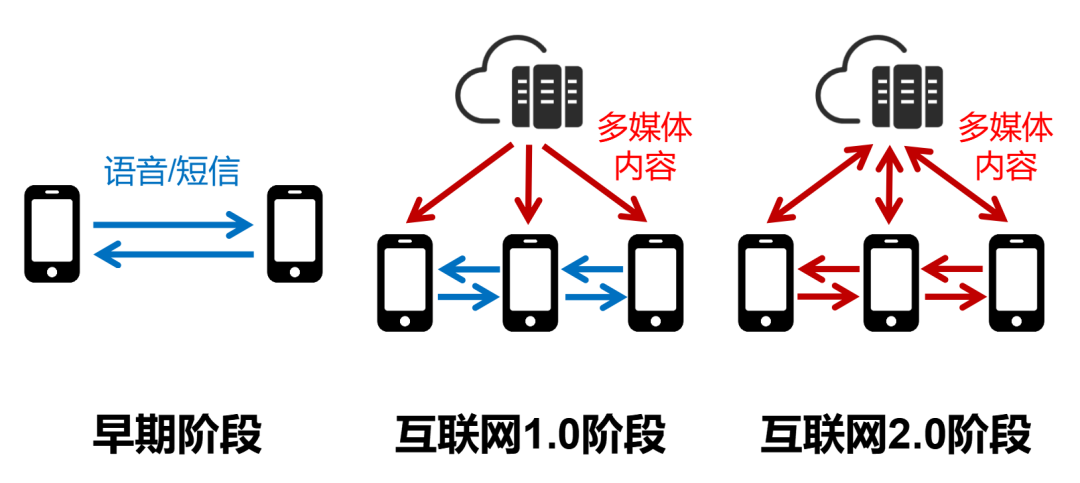 后来,互联网崛起,越来越多的网站和内容服务提供商出现。内容的形式,也从文本向音视频等多媒体演进。整个网络开始变成了中心化的业务架构。