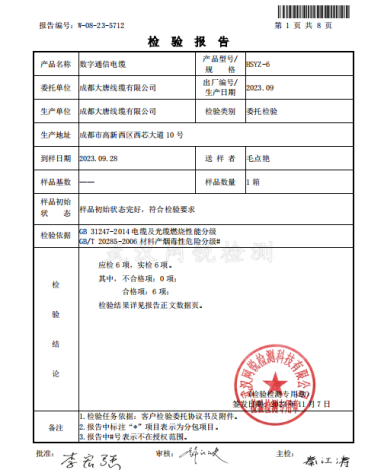 面对全球市场多样化的安全规范,成都大唐的高阻燃系列产品实现了标准的全覆盖与高等级符合。