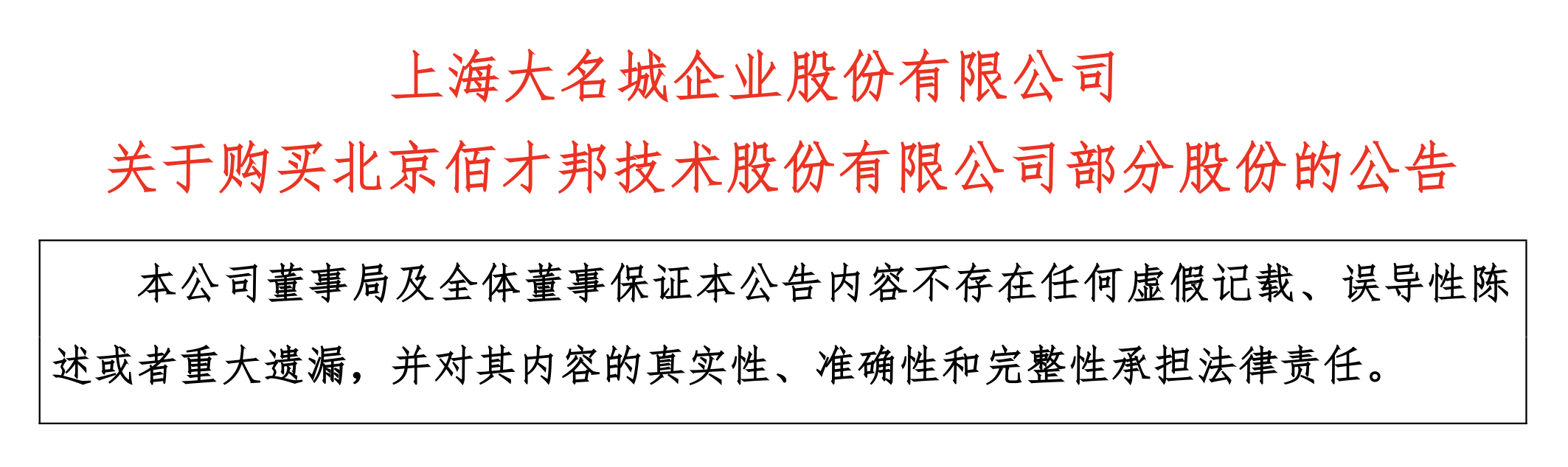 大名城在公告中指出,公司本次购买佰才邦19.4293%股份,旨在贯彻公司经营发展战略,在保持经营发展的同时,审慎探索业务转型,探索与尝试与国家战略发展相对应的新领域、新技术或新模式,增强公司新业务领域的发展潜力。