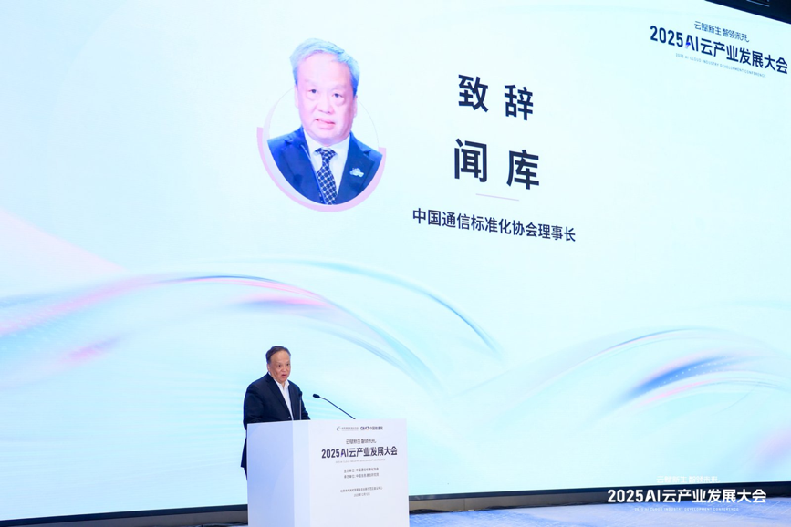 闻库在致辞中表示,人工智能与云计算的深层次融合成为必然趋势。中国通信标准化协会聚焦人工智能与云计算融合发展的标准化主线持续深耕发力。在标准赋能产业高质量发展的实践中取得三方面进展:一是筑牢标准根基,构建全链条融合标准体系;二是推动标准落地,赋能行业智能化转型;三是深化国际协调,推进标准国际互认。他分享了接下来协会工作思路:一是统筹推进标准体系迭代,强化标准的创新引领支撑;二是持续深化平台赋能,促进标准与产业同频共进;三是拓展国际合作交流,共筑开放共赢生态。