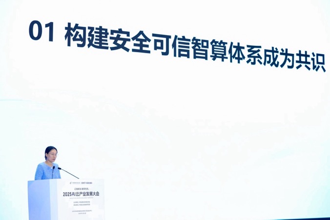 王志勤在致辞中表示,我国AI云产业呈现出创新活跃、融合加速、生态完善的良好态势。一是政策体系不断完善,明确AI云发展路径;二是产业规模迅速增长,市场活力充分释放;三是模式创新迭代加速,促进应用场景持续拓展。此外,她就未来AI云产业发展提出如下建议:一是坚持技术创新引领,突破核心技术瓶颈;二是深化AI云场景融合应用,释放产业价值;三是构建开放协同生态,营造良好发展环境。