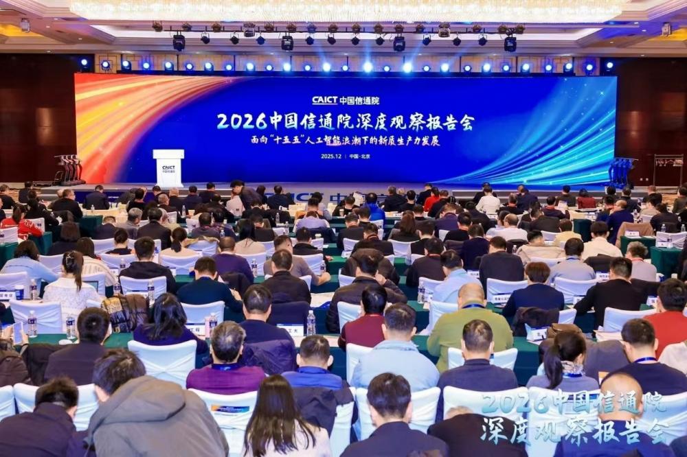 12月13日,2026中国信通院深度观察报告会主报告会在北京举办。本次报告会主题为 “面向“十五五”,人工智能浪潮下的新质生产力发展”。工业和信息化部党组成员、副部长张云明出席报告会并致辞,第十四届全国政协委员、工业和信息化部原副部长王江平,中国工程院院士邬贺铨分别作主旨报告。