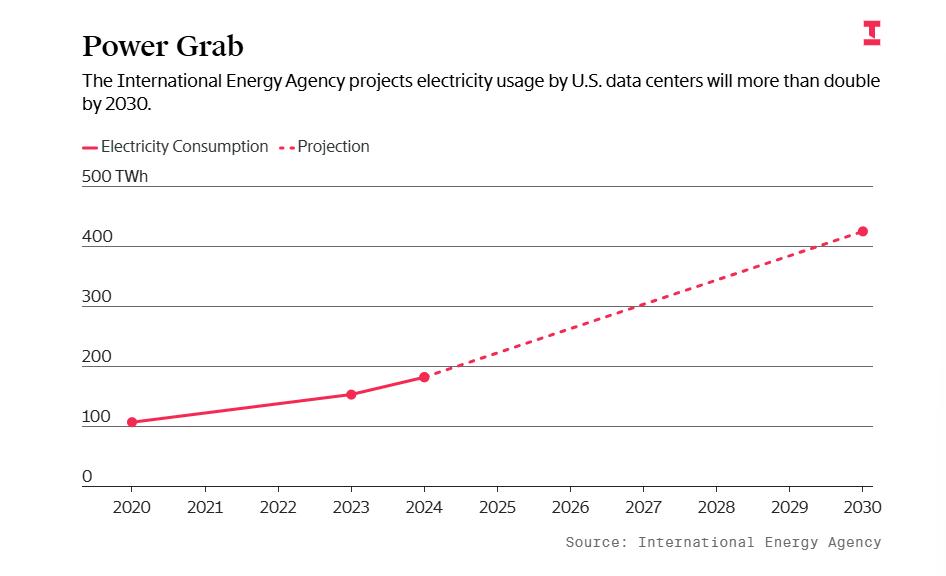 图:美国能源署预计,美国数据中心的用电量预计将在2030年前翻番