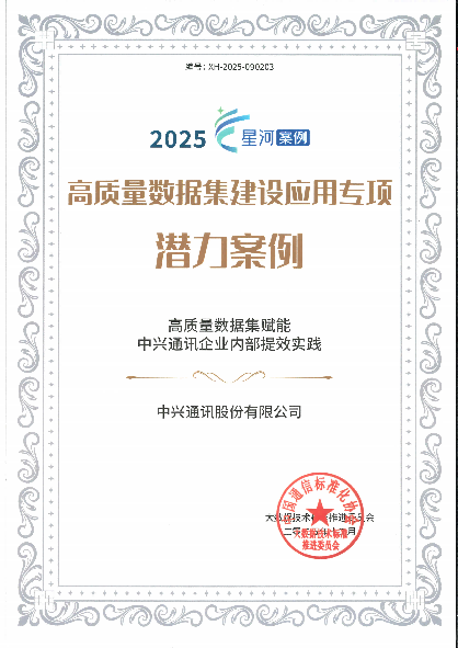 中兴通讯在数据要素领域持续深耕,近日,在国家级行业赛事中荣获多项重磅奖项。在中国信息协会主办的2025数据要素应用创新大赛中,中兴通讯“城市生命线数据治理平台”荣获大赛最高奖项一等奖,“智驭全球货运:数据要素赋能全场景物流韧性提升”项目荣获三等奖。同时,继中国国际大数据产业博览会中荣获“高质量数据集方向标准/技术文件验证试点典型单位”后,中兴通讯再次凭借“高质量数据集赋能中兴通讯企业内部提效实践”项目,成功入选“2025数据智能星河案例 高质量数据集建设应用专项潜力案例”。