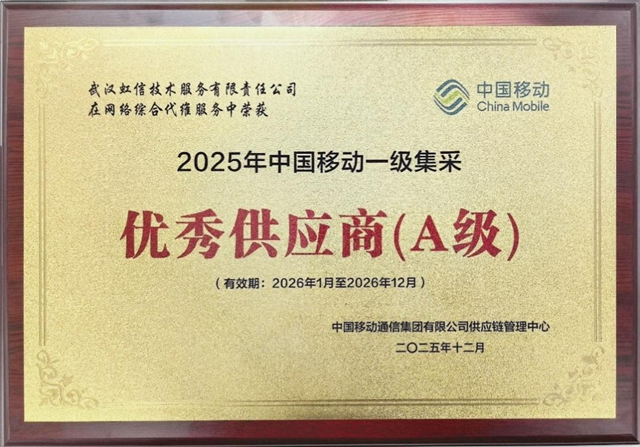 近日,在2025年中国移动供应链生态合作大会上,中信科移动旗下武汉虹信技术服务有限责任公司(以下简称虹服公司)凭借专业的技术实力、优质的服务品质与深度的协同创新能力,斩获“中国移动一级集采优秀供应商(A级)”殊荣,成为中国移动供应链生态中备受认可的核心合作伙伴。