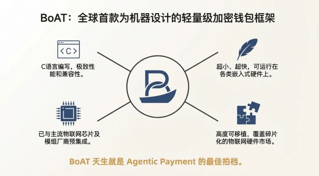 目前的数字钱包技术大多基于Java等高级语言,运行在庞大的服务器端,这对于资源受限的边缘设备而言过于沉重且不安全。而Leo在演讲中提到的BoAT(Blockchain of Things)技术路径,则是基于C语言开发,能够直接与主流物联网芯片和模组厂商进行底层预集成。