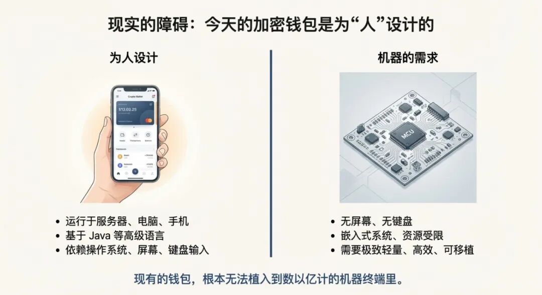 正如Leo在演讲中所提到的,现有的基于Java等高级语言的数字钱包,根本无法运行在资源受限的嵌入式设备上。这是一道被忽视了的鸿沟。