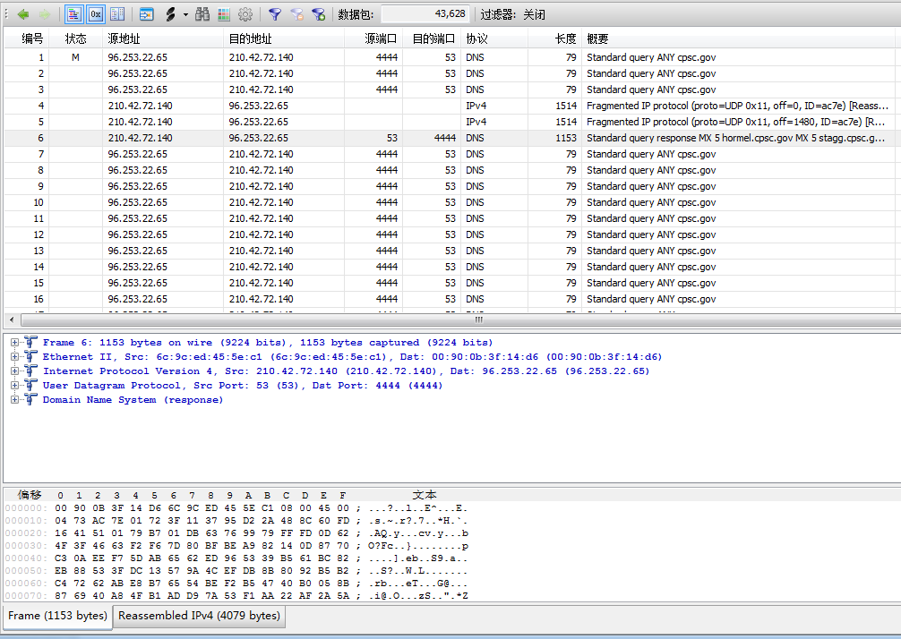 响应目标IP均为同一批伪造地址,形成典型的“请求-放大-攻击”链路。