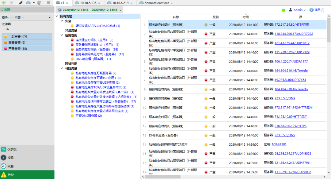 内置80+种告警模板,覆盖性能故障与安全威胁,实时发现异常流量、攻击行为与业务瓶颈。
