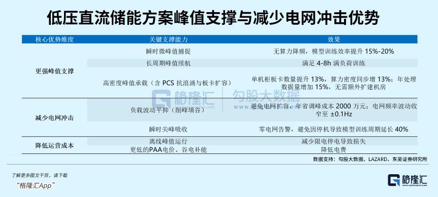 除了绿电配储,AI数据中心的电能质量管理需求催生了新的储能赛道——低压直流储能。传统数据中心采用“中压交流-低压交流”架构,电力转换环节多、损耗大。