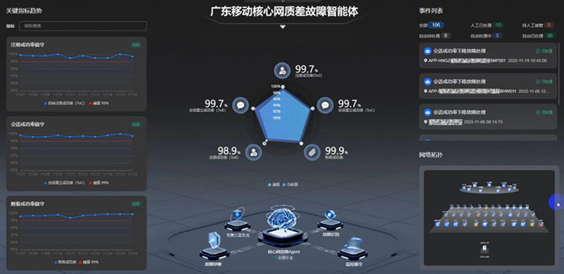 为贯彻落实中国移动集团“AI+”战略,广东移动与华为协同推进网络运维智能化转型,共促产业数智化升级。2024年11月,广东移动引入华为Iaster MDAF核心网故障处理智能体,并于2025年4月全面融入生产运营流程,与工单系统有效协同,实现设备告警故障工单的自动诊断定界。截止2025年12月底,累计处理18000+设备告警工单,工单诊断处理时长从43分钟缩短至5分钟,诊断覆盖率达到95%以上,有效提升了运维效率。