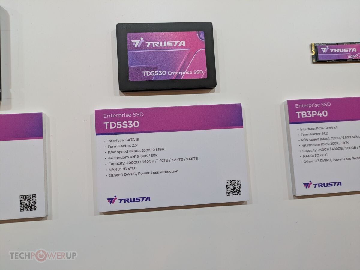 除 PCIe 5.0 产品外,TRUSTA 也同步展出了基于 SATA III 与 PCIe Gen 4 x4 接口的多款企业级 SSD 方案。