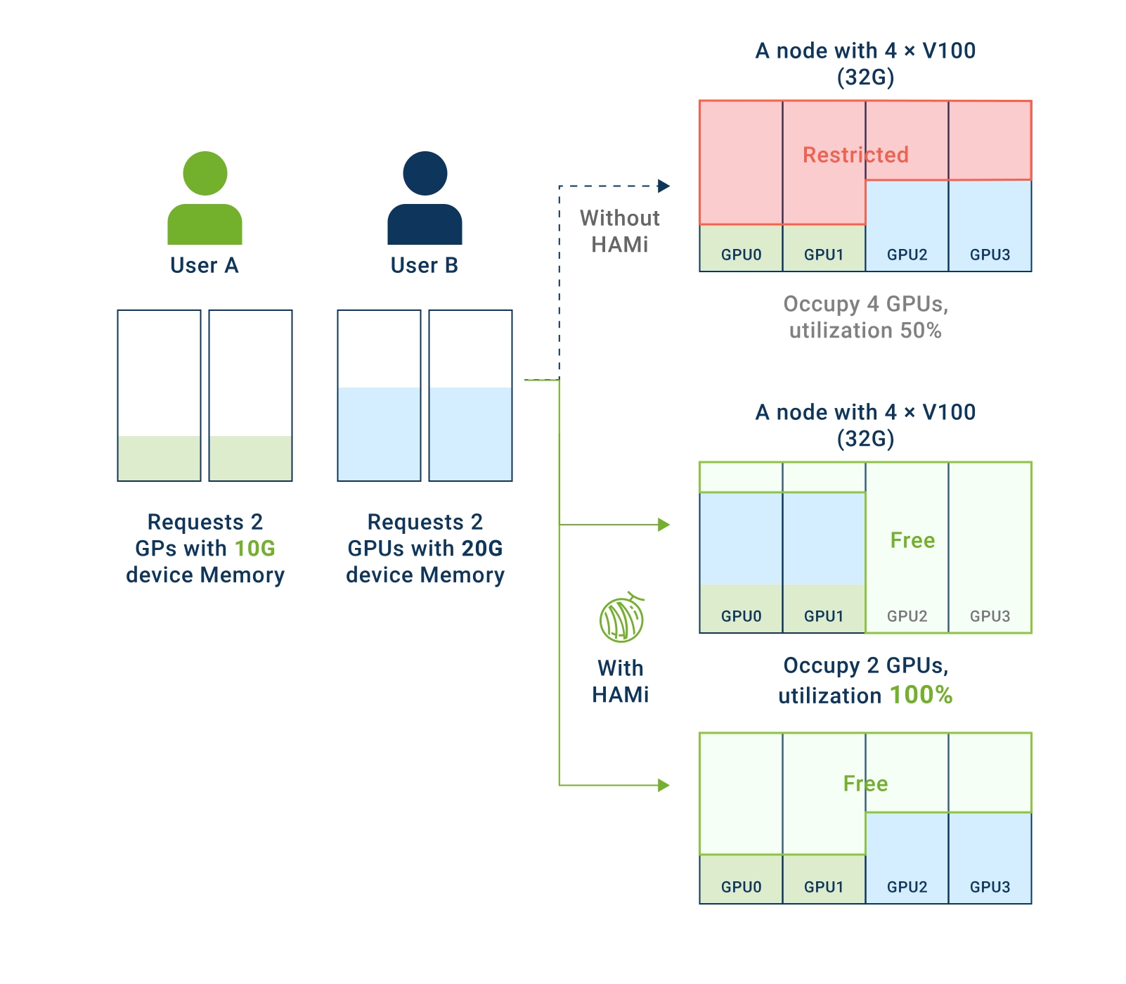 在顺丰科技的应用案例中,密瓜智能实现了在仅有的 6 张 GPU 上成功部署了 19 个测试服务,原本需要 19 张卡才能运行的任务,现在节省了 13 张卡,资源效率提升了 2 倍以上。而在越南 AI 学习平台 PREP EDU 的案例中,面对 RTX 4070 与 4090 混装的复杂异构环境,HAMi vGPU调度能力加上PREP EDU的Devops团队对其工作流程进行了大量优化,实现了GPU集群痛点减少50%,GPU基础架构优化了90%。