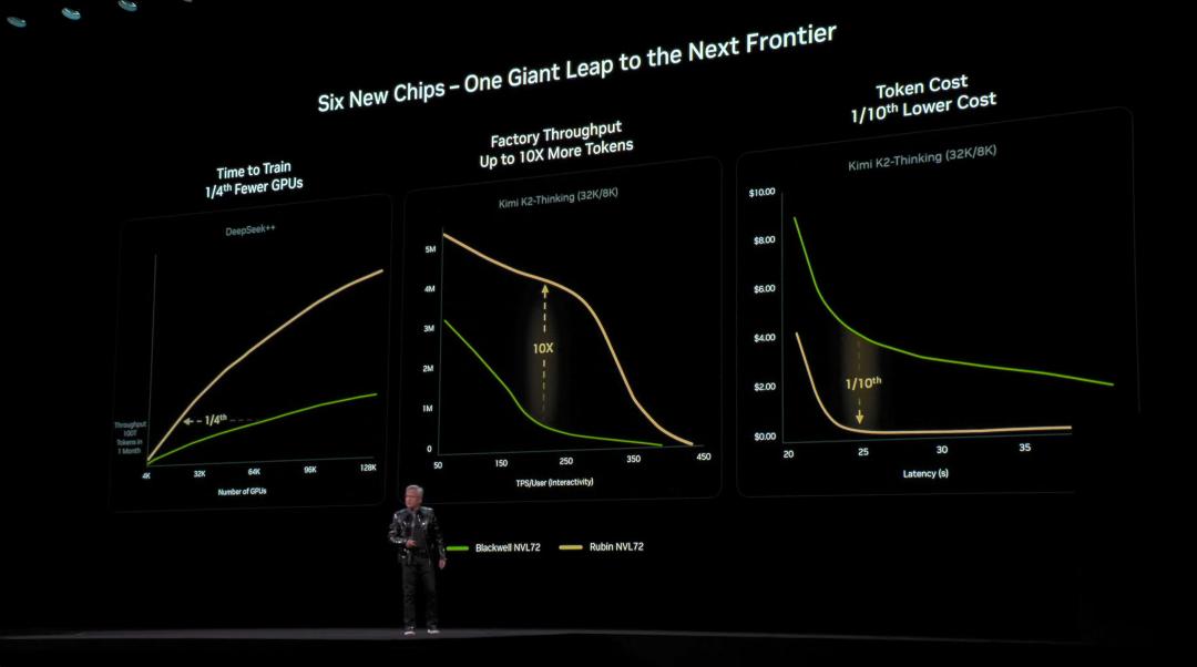 通过3.6 TB/s的带宽和网络内计算能力,它能让Rubin中的72个GPU像一个超级GPU一样协同工作,直接把推理成本打至1/7。