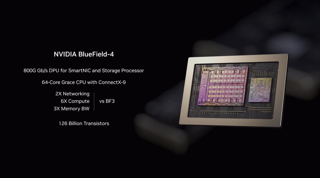 BlueField-4 DPU是一个数据处理单元,它能卸载网络、存储和安全任务,还能管理AI的上下文记忆系统。