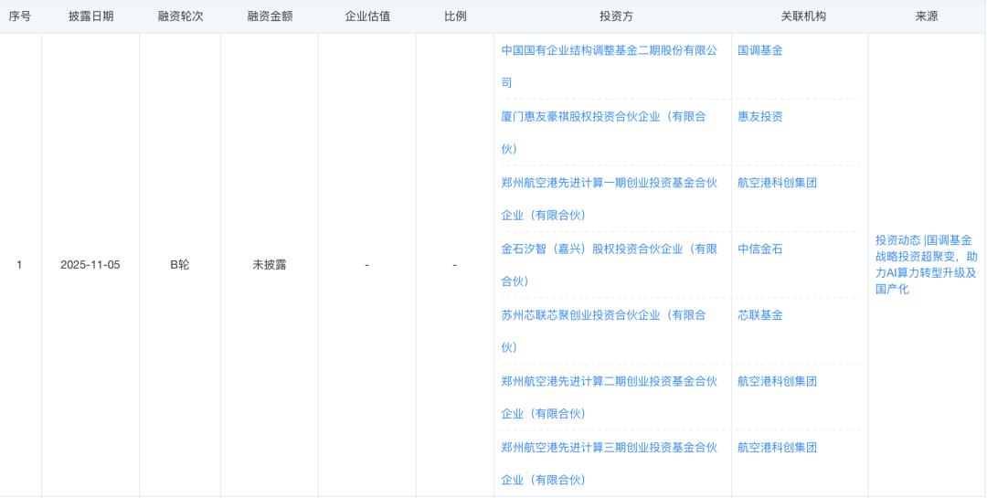 中国电信投资则加码了超聚变于2022年9月完成的融资中;此外,超聚变于2025年完成的最新一轮B轮融资中,国调基金、郑州航空港科创集团两大国有资本参股。