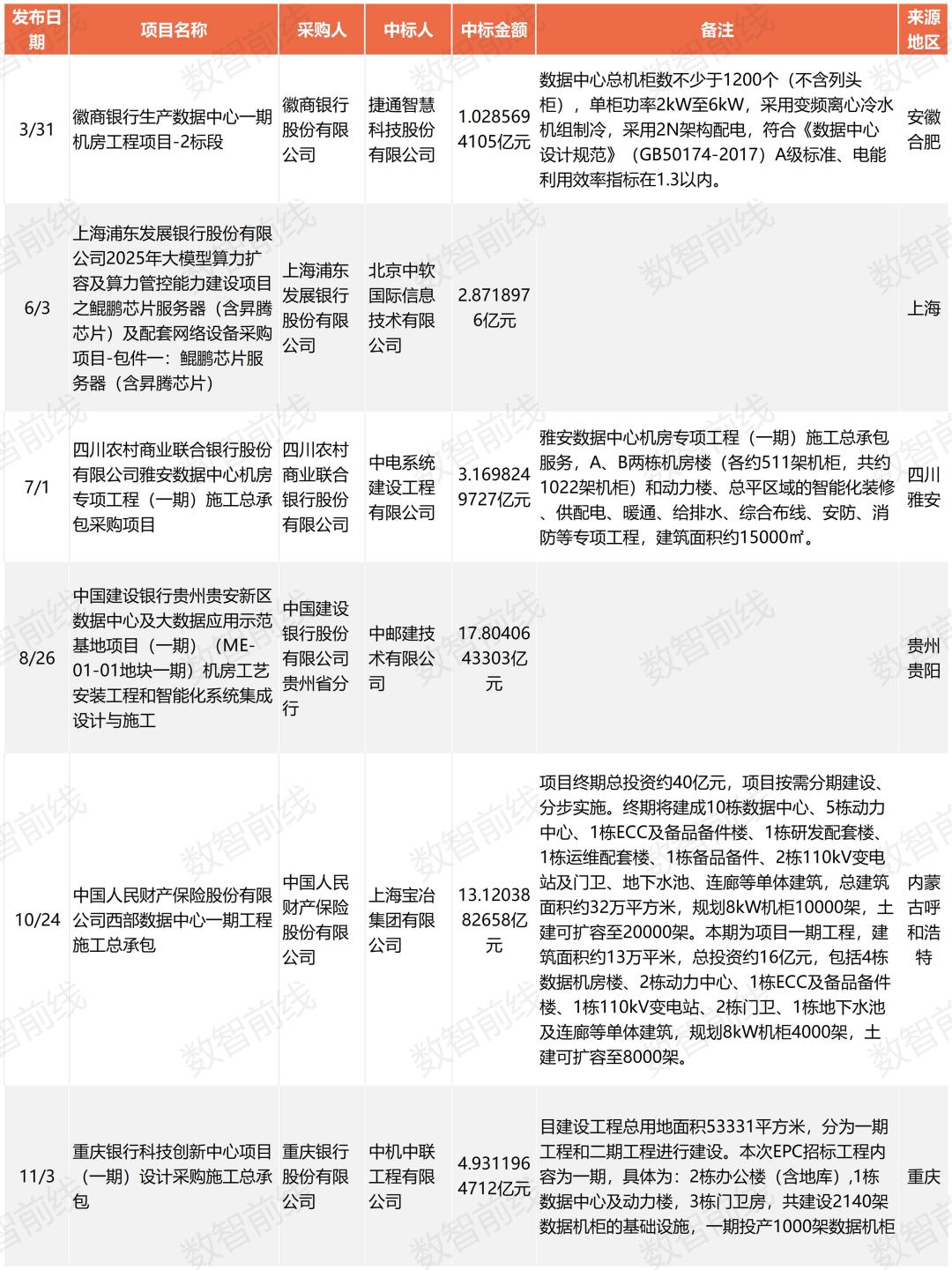 金融作为最早一批开启大模型应用探索的行业,也在2025年进行了数据中心建设,至少出现了20个亿元大单。