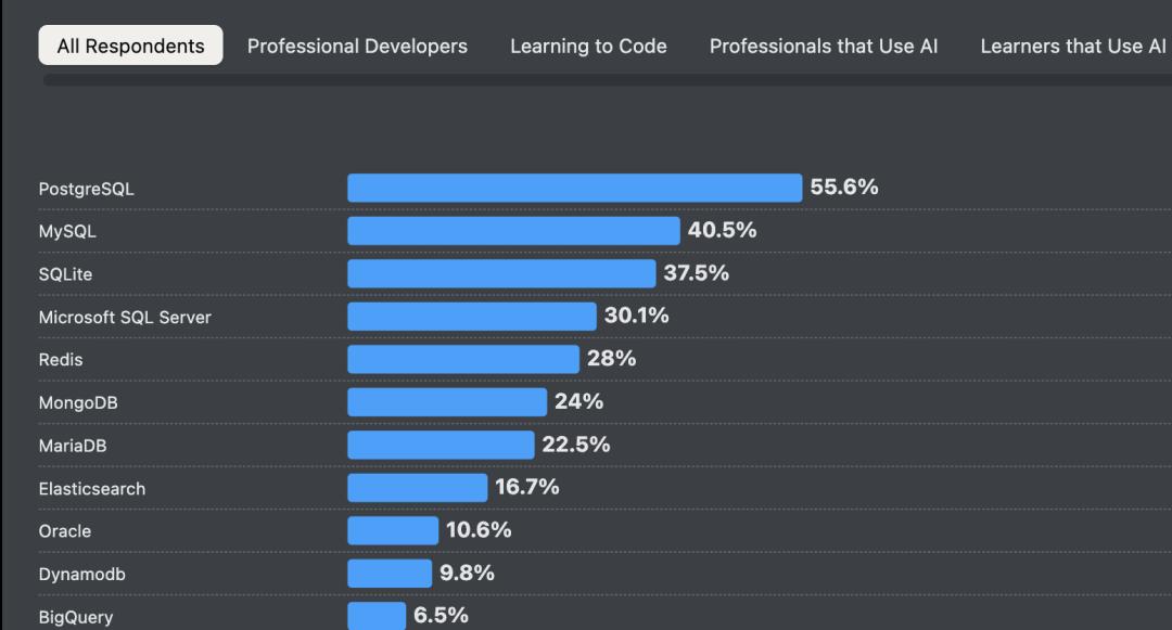 不可否认,MySQL 目前仍保持着较高的知名度和装机量,在 DB-Engines 排名中位列第二,在 Stack Overflow 调查中也仍是使用最广泛的开源数据库之一。