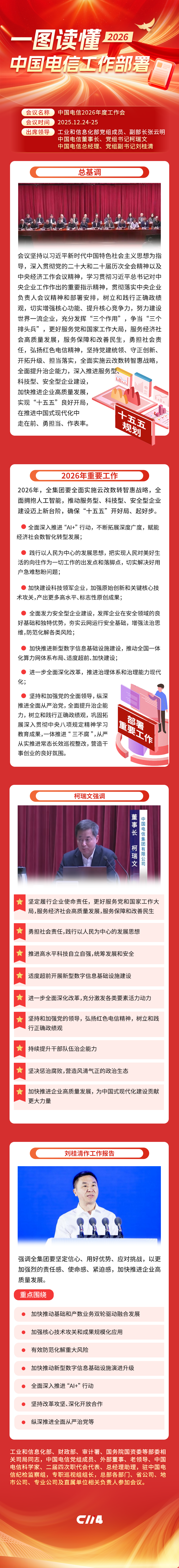 2026年,中国电信全面实施云改数转智惠战略,全面拥抱人工智能,推动服务型、科技型、安全型企业建设迈上新台阶,确保“十五五”开好局、起好步。