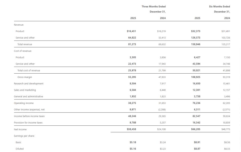 微软2026财年第二财季业绩数据