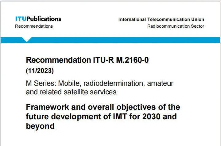 2023 年 6 月,ITU-R 发布《IMT 面向 2030 及未来发展的框架和总体目标建议书》。