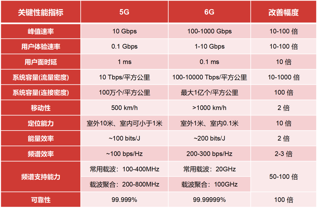 需要注意的是,6G 愿景中定义的指标还比较模糊,很多都没有量化。随着 6G 标准研究的不断深入,指标数据会更具体。
